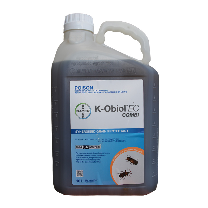 K-Obiol® Combi is a highly effective insecticidal formulation designed to protect stored grain from insect infestation. Combining the powerful action of deltamethrin, a synthetic pyrethroid, with piperonyl butoxide (PBO), a synergist that enhances efficacy, K-Obiol Combi provides long-lasting protection against a broad spectrum of stored product pests including weevils, beetles, and moths.